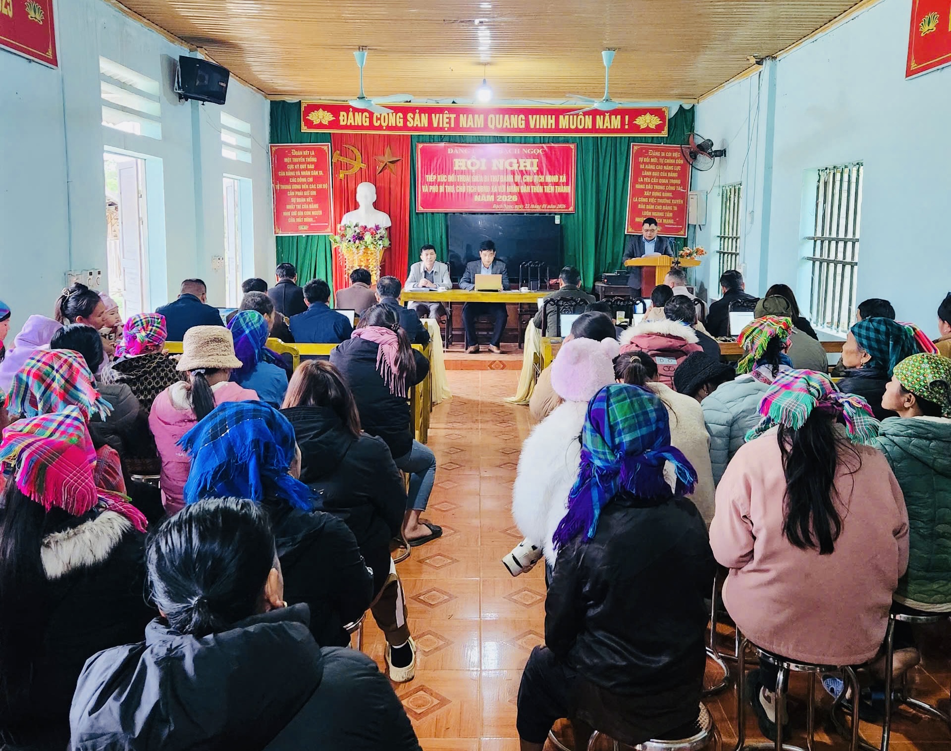 Thực hiện kế hoạch số 37-KH/ĐU, ngày 19/01/2026 của Đảng ủy xã tiếp xúc đối thoại với nhân dân trong tháng 01 năm 2026 của đồng chí Bí thư Đảng ủy xã Bạch Ngọc. Vừa qua, Đảng ủy – UBND xã Bạch Ngọc đã tổ chức Hội nghị tiếp xúc, đối thoại trực tiếp giữa Bí thư Đảng ủy, Chủ tịch UBND xã với Nhân dân thôn Tiến Thành.Hội nghị do đồng chí Thiều Văn Bốn – Bí thư Đảng ủy, Chủ tịch HĐND xã và đồng chí Phạm Tiến Duật – Phó Bí thư Đảng ủy, Chủ tịch UBND xã đồng chủ trì. Tham dự hội nghị có đại diện lãnh đạo các ban, ngành, đoàn thể của xã cùng đông đảo Nhân dân thôn Tiến Thành.