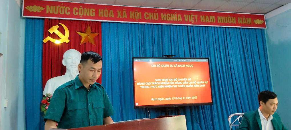 Thông qua buổi sinh hoạt, chi bộ đã thống nhất các nhiệm vụ trọng tâm: tăng cường công tác tuyên truyền pháp luật về nghĩa vụ quân sự; thường xuyên kiểm tra, quản lý nguồn thanh niên trong địa phương; phát huy vai trò gương mẫu của đảng viên trong vận động, làm tốt công tác hậu cần và phối hợp tổ chức khám tuyển; kịp thời báo cáo, đề xuất với cấp ủy, chính quyền khi có vướng mắc. Buổi sinh hoạt góp phần củng cố tinh thần trách nhiệm của đảng viên chi bộ quân sự, tạo tiền đề triển khai tốt công tác tuyển quân năm 2026 tại xã Bạch Ngọc.