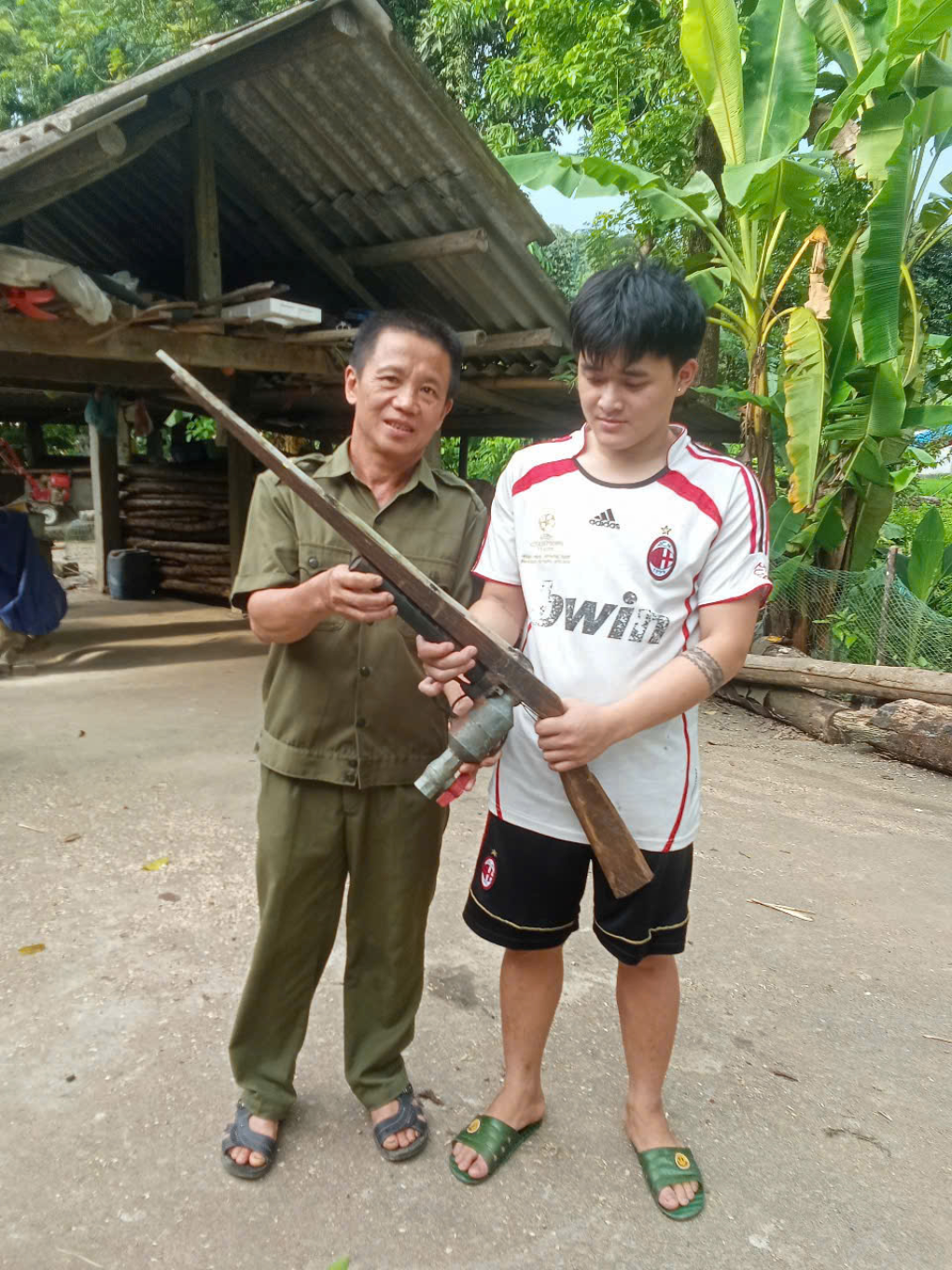 Người dân mang súng tự chế cho Tổ trưởng tổ Bảo vệ an ninh trật tự tại cơ sở.